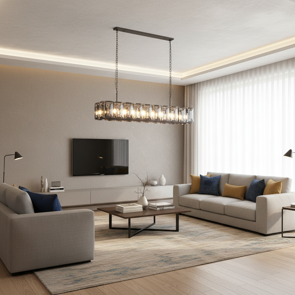 This elegant crystal pendant lamp features sparkling crystal accents that refract soft, warm light. Its modern design adds a luxurious touch to dining rooms, living rooms and bedrooms, blending beauty and functionality perfectly.